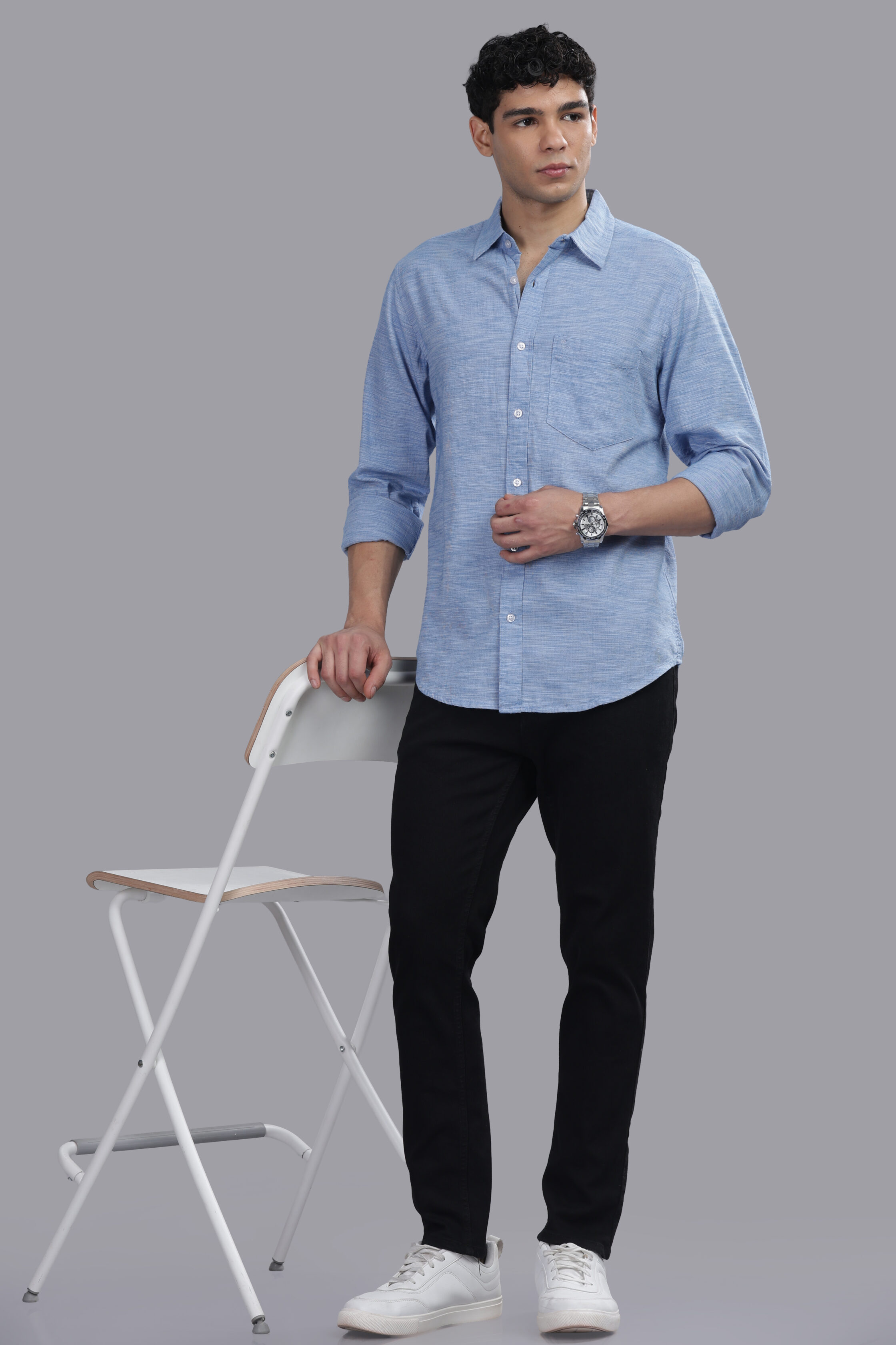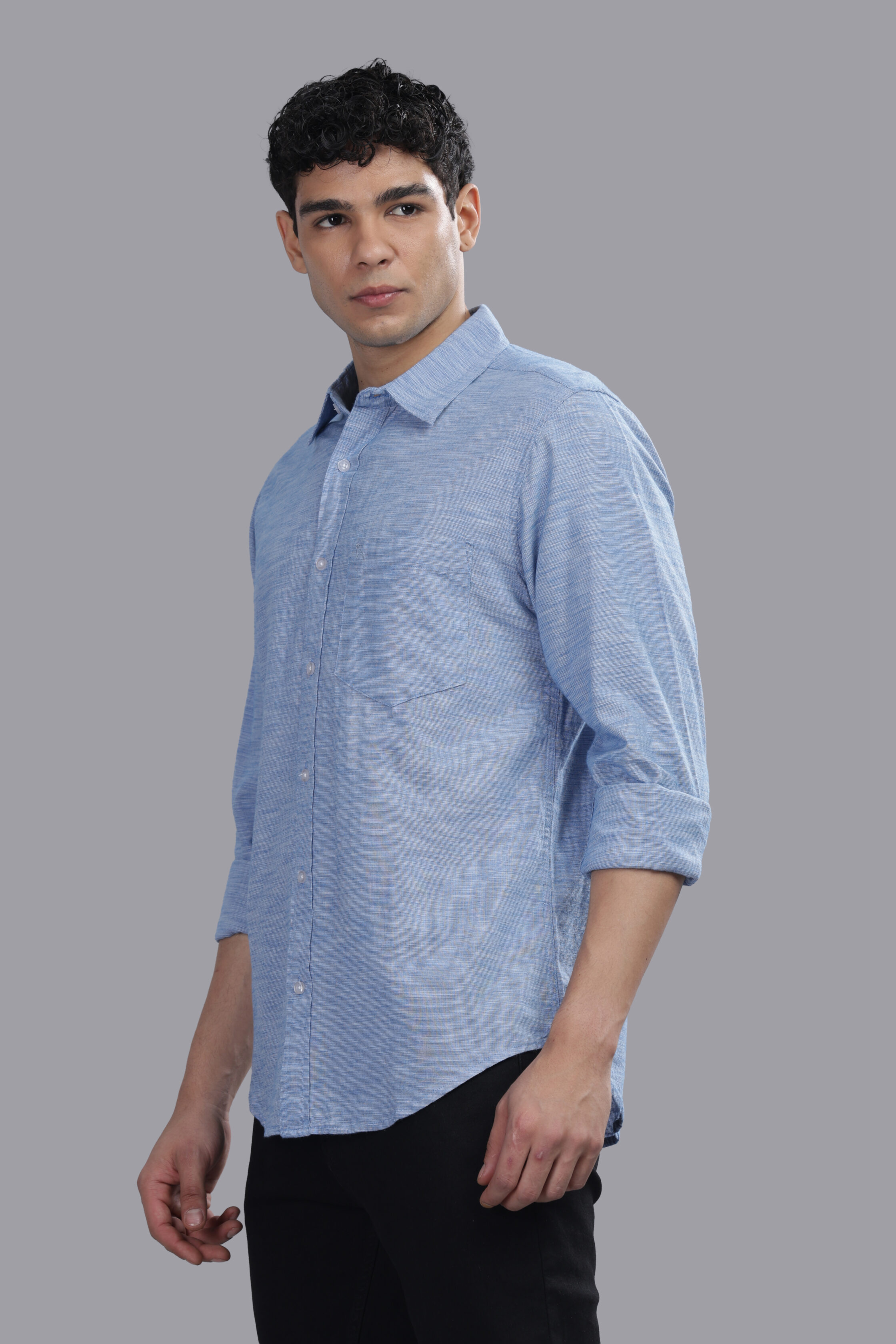Crafted for refined everyday dressing, this light blue premium shirt blends timeless elegance with modern comfort. Made from finely woven, breathable fabric with a subtle textured finish, it offers a smooth, luxurious feel against the skin. The clean silhouette, precise tailoring, and minimalist detailing make it an essential piece for the contemporary wardrobe—perfectly suited for both elevated casual wear and polished professional looks.