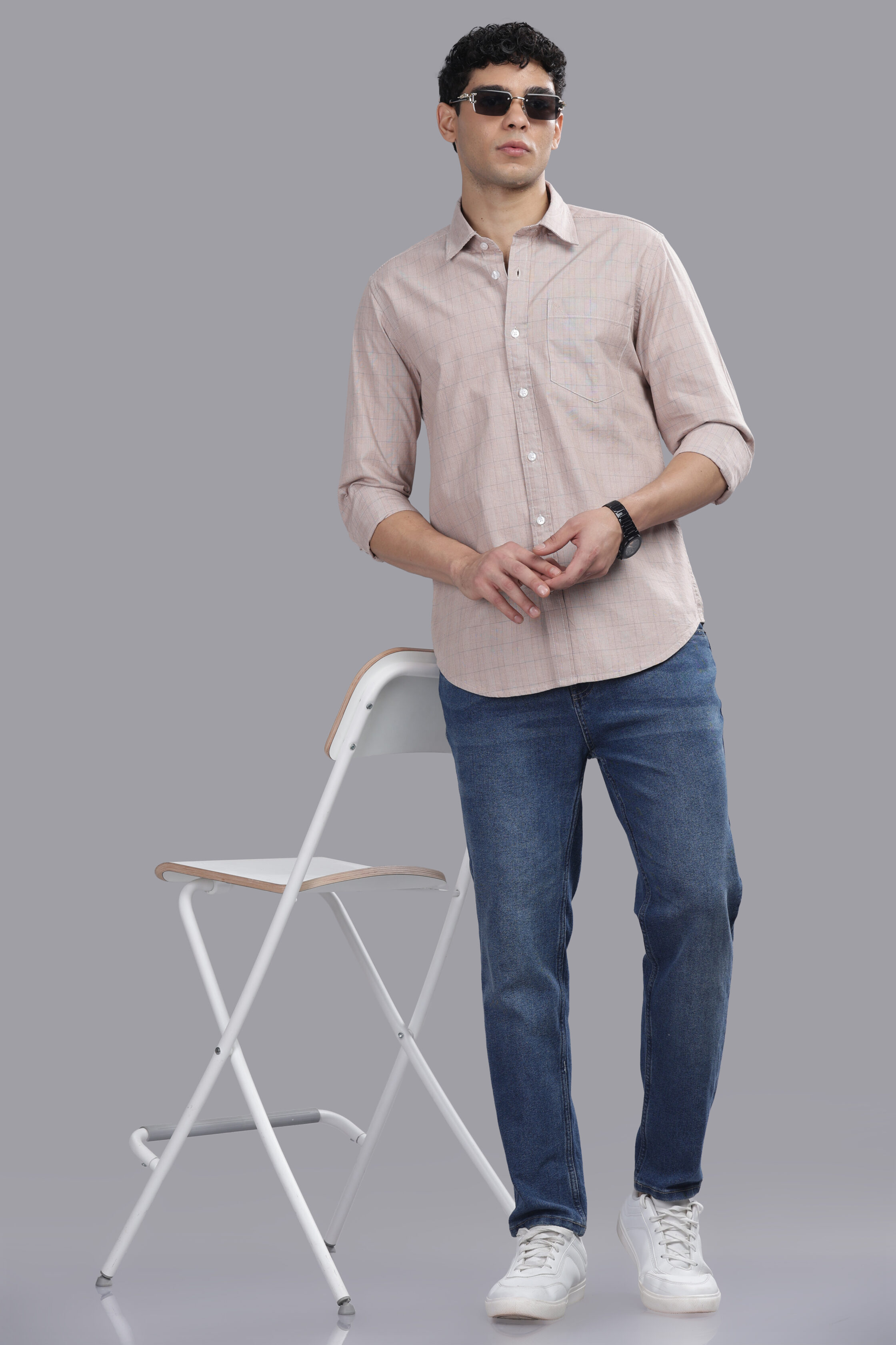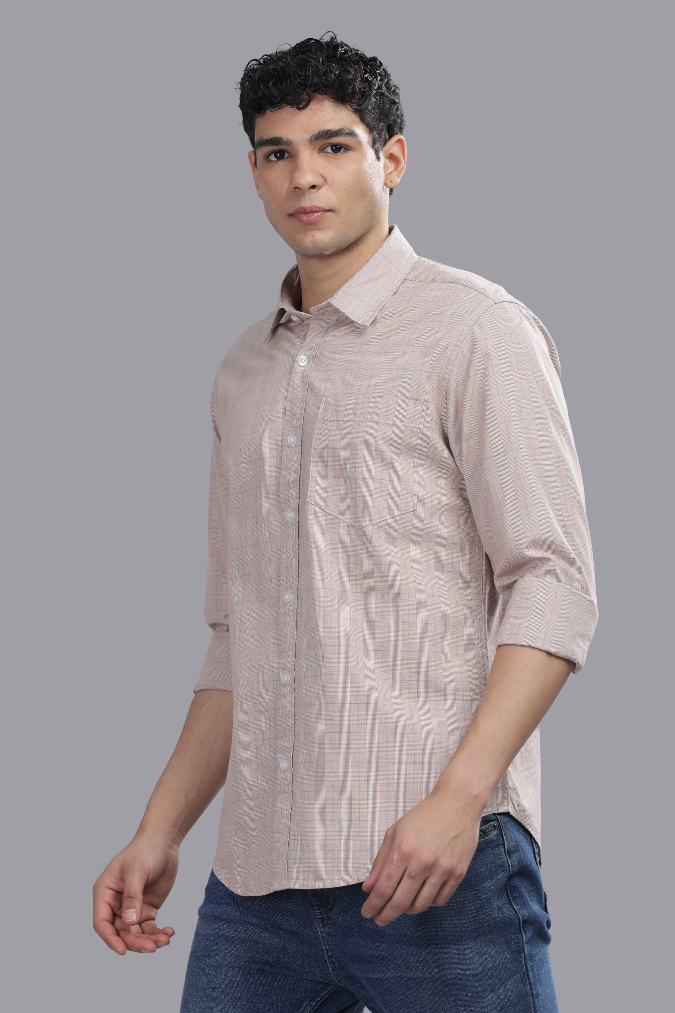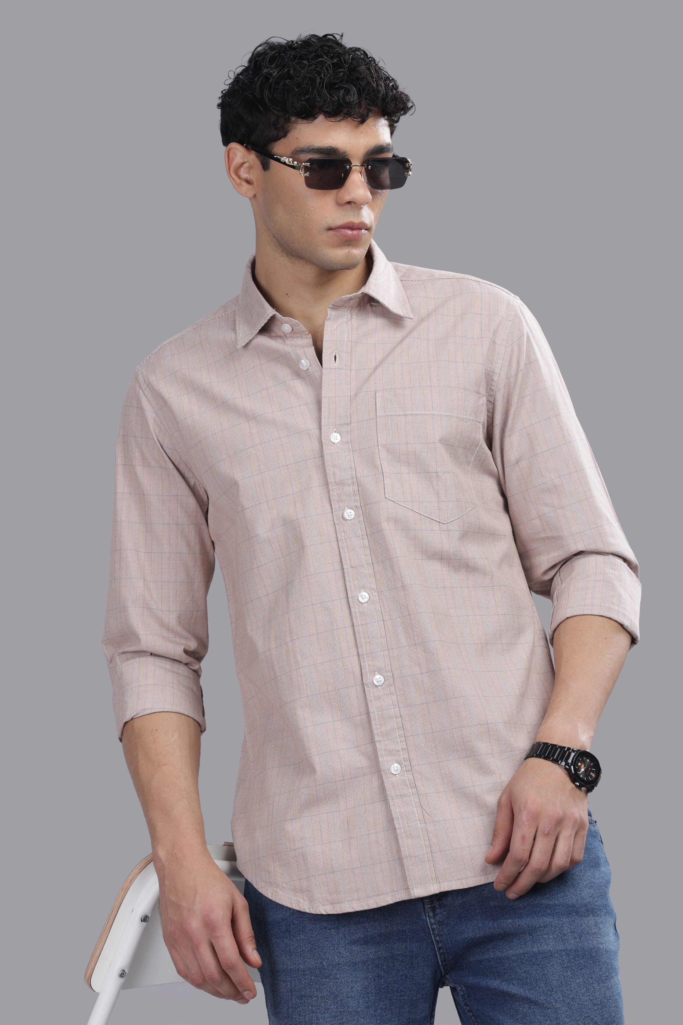 Elevate your everyday wardrobe with this premium light beige checked shirt, thoughtfully crafted for understated sophistication. Made from finely woven, breathable fabric, the shirt offers a smooth hand feel and exceptional comfort throughout the day. The refined check pattern adds subtle character, while the impeccably structured collar and precise tailoring ensure a sharp, confident silhouette. Designed for the modern gentleman, this shirt transitions seamlessly from formal settings to elevated casual occasions.